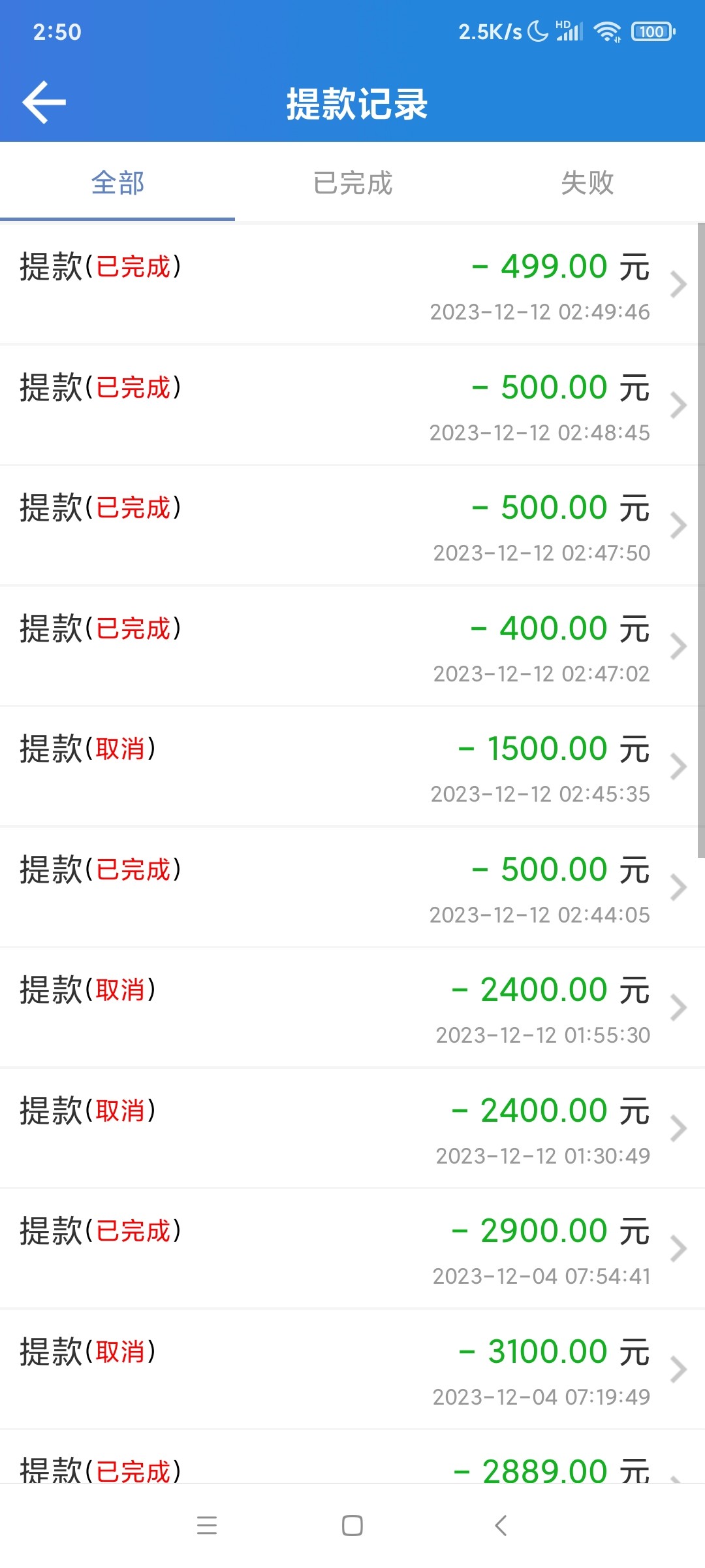 提款2400搞了几次,一个小时还是处理中。就取消试了小额,结果系统自动出款秒到。冲1000提2400都卡款。其实这台子是有延迟彩金的,但申请过两次都是不符合要求,就没有再试过了。真垃圾