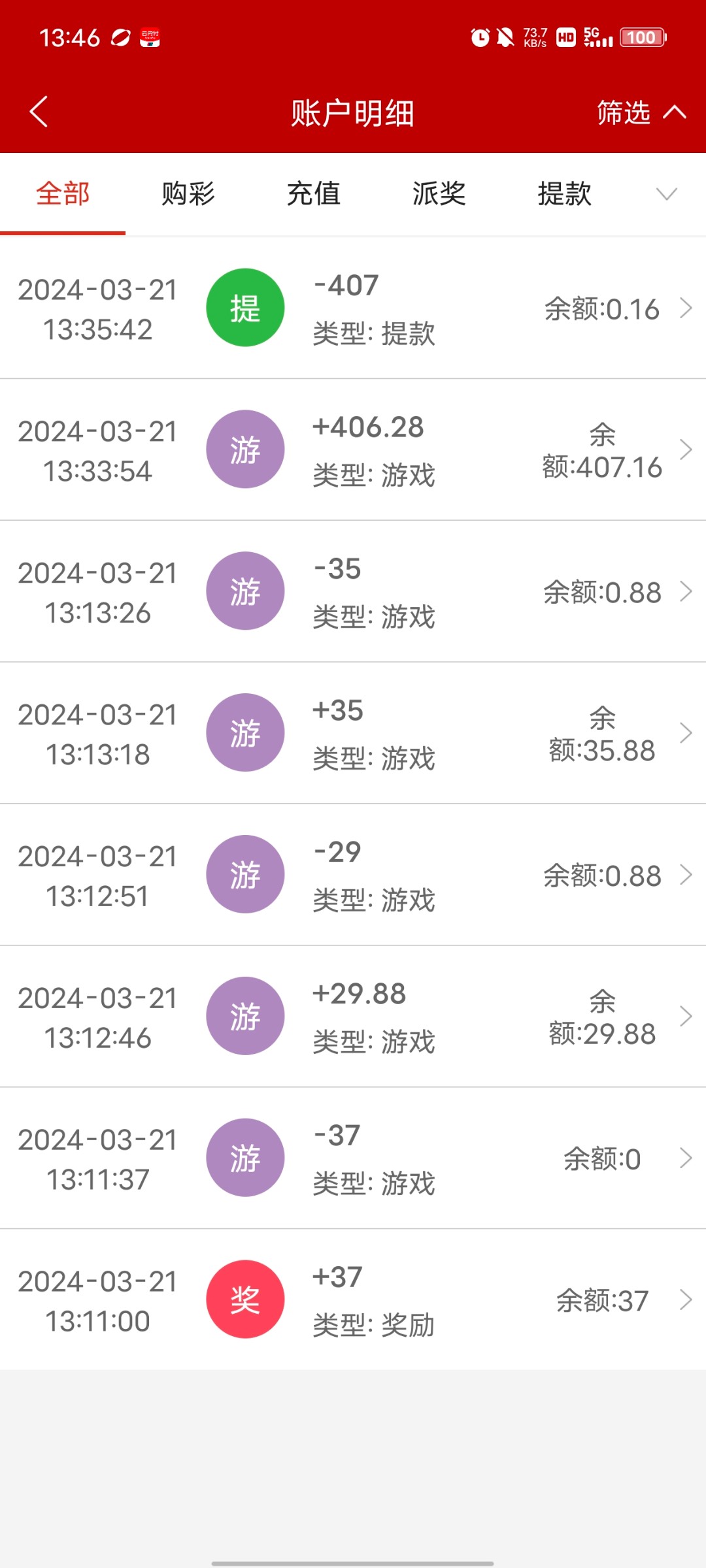 在他这儿提了一千多了 昨天注册的