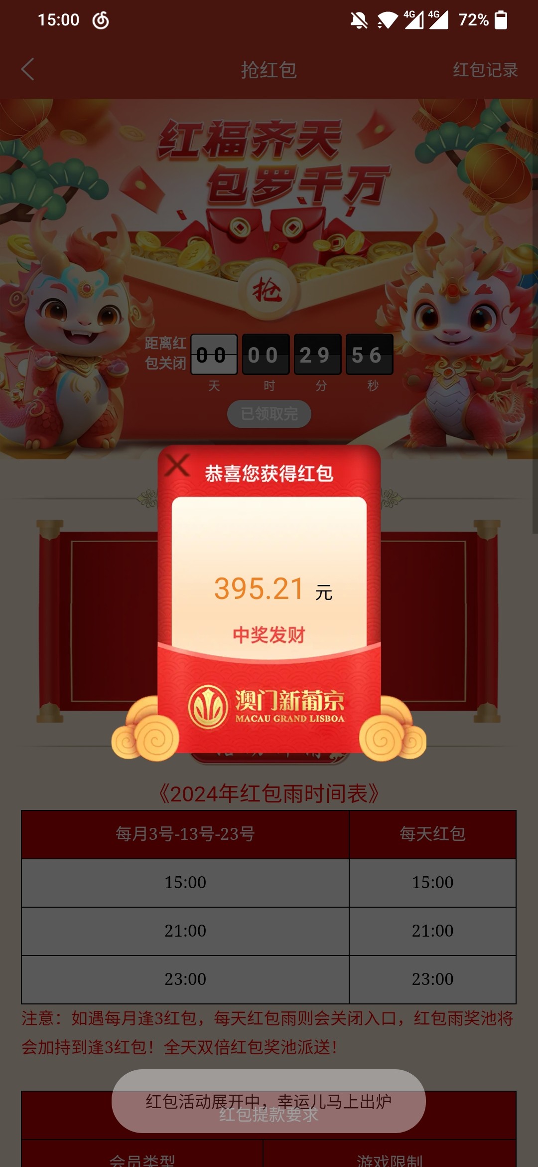 第一次抢到这么大的红包