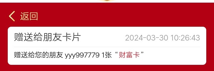 求一张财富卡,账号yyy997779,红了团
