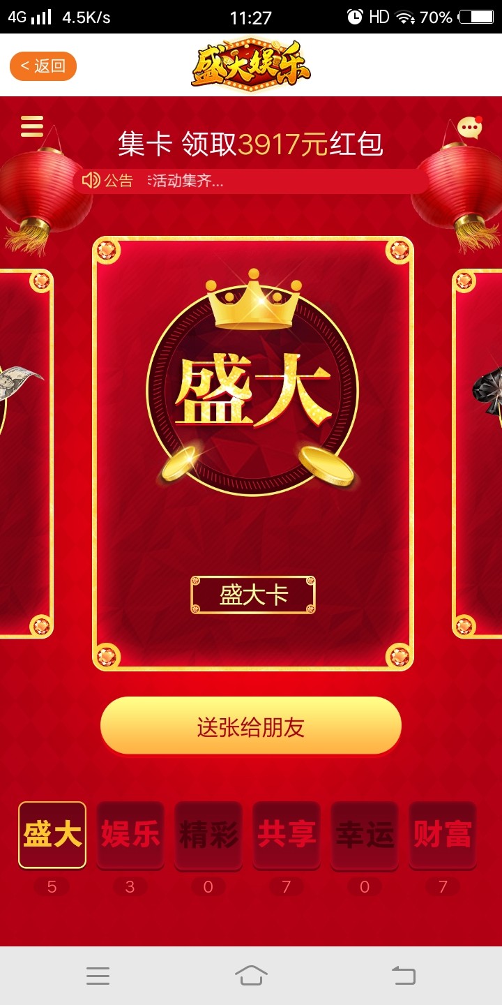 幸运卡送0张