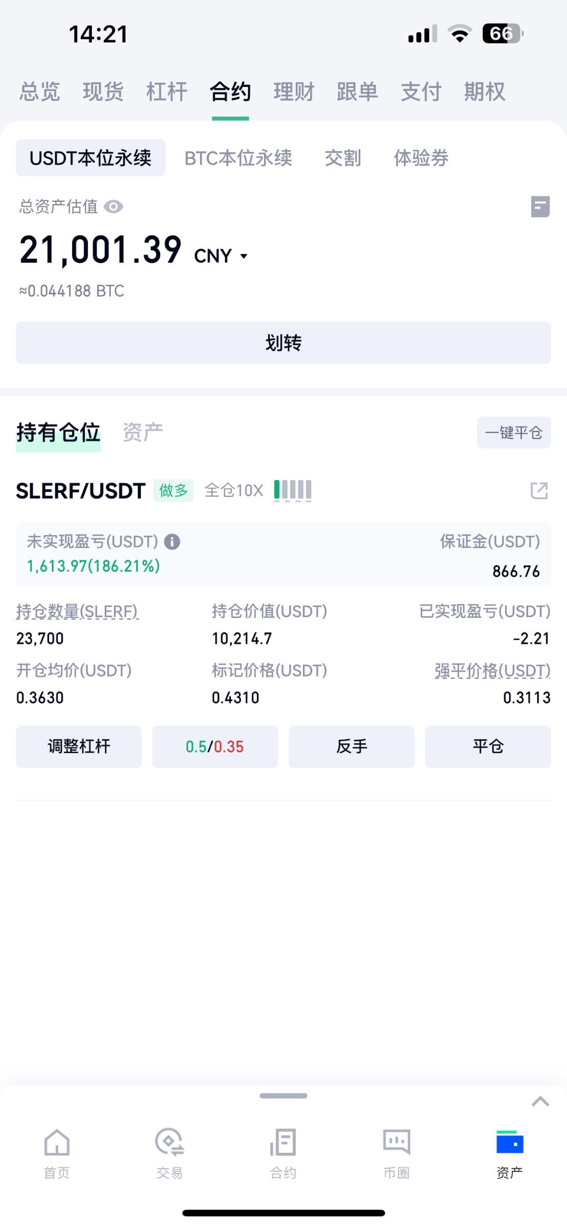 那合约不是赢了一千多嘛