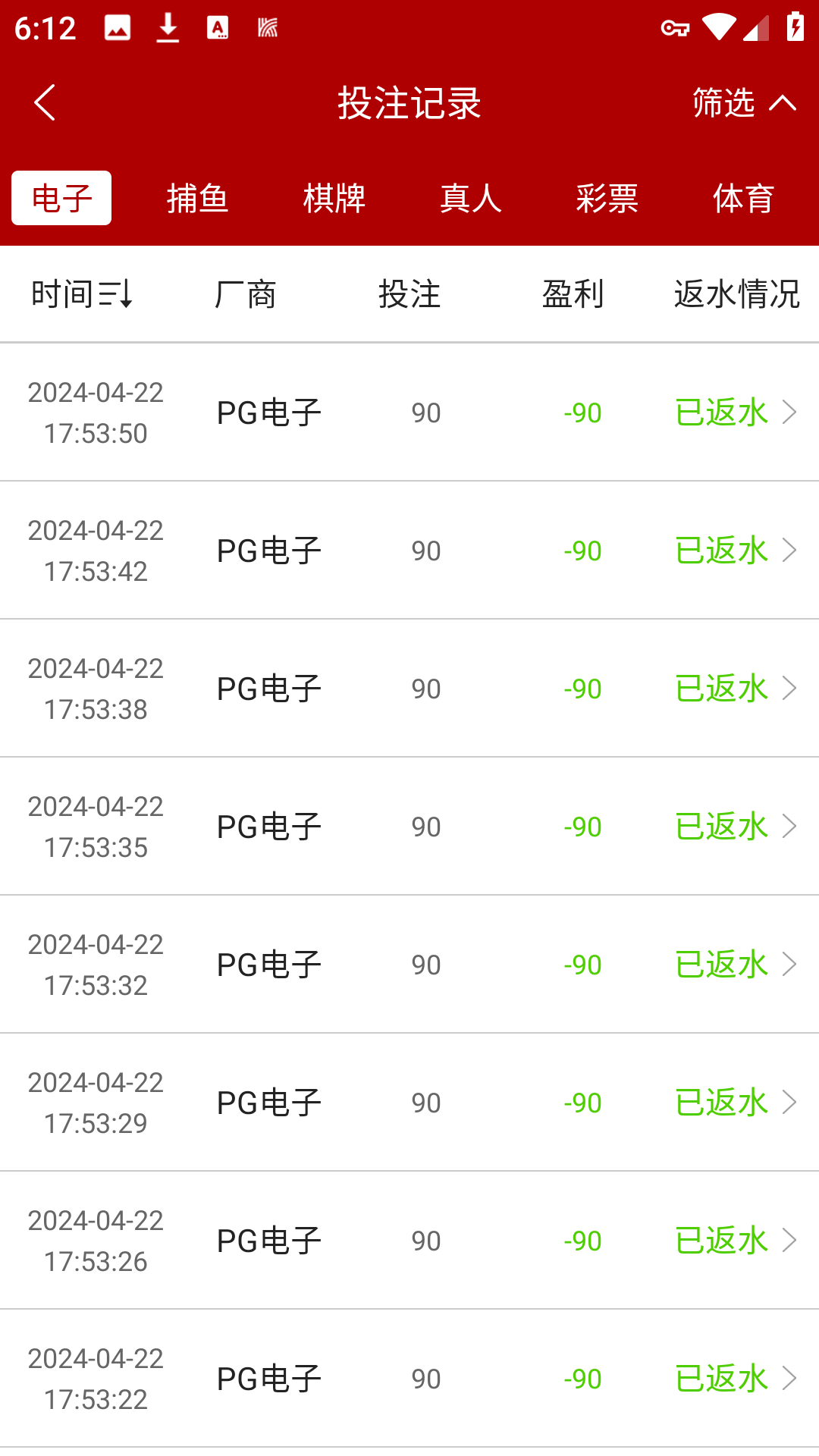 990啊,小日本台,狗都不玩,当天充值玩的返水第二天打上一百提款直接手持