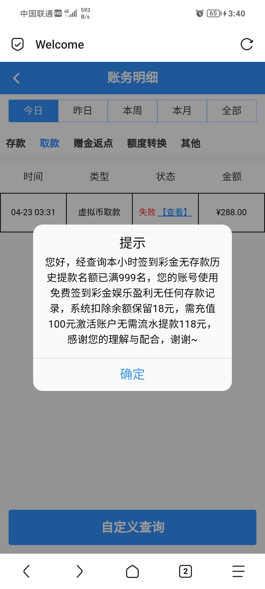 我充值100,就扣288?留18嘛?还是可以全部出款?这个是第二个手机号注册的,第一个白嫖了三次,给我关了签到了。