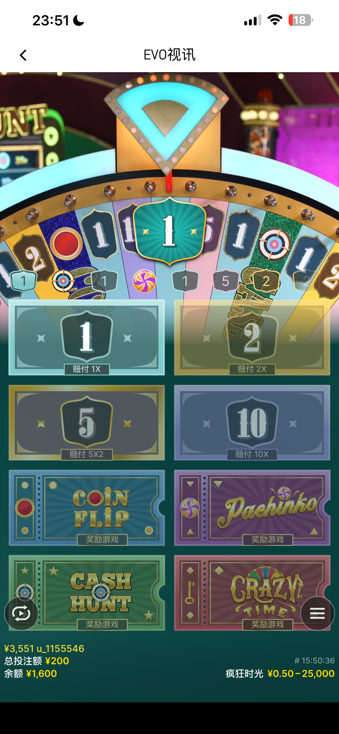 这种evo或者pt真人转盘我都是倍投2号1赔3,倍投上去遇到个翻几十倍的话直接发财。