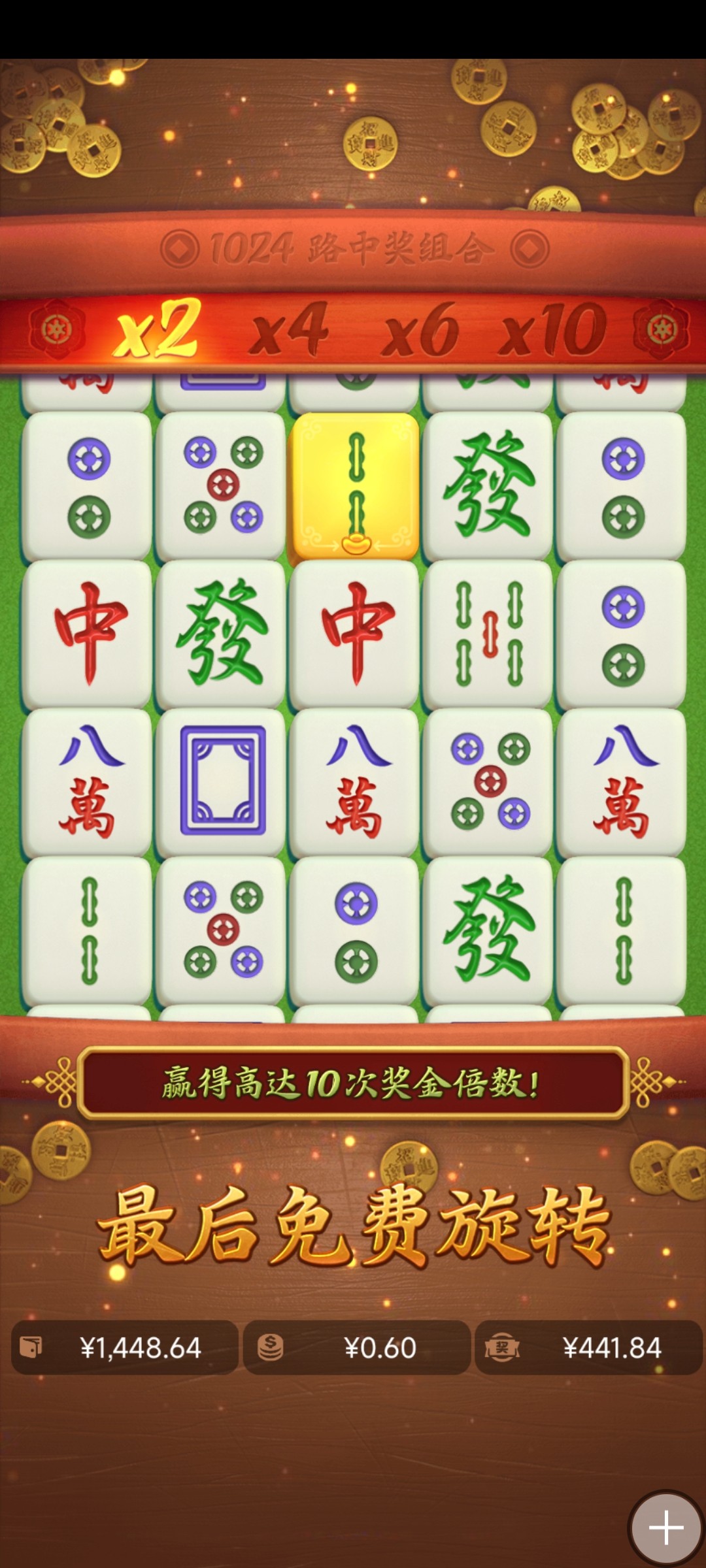 麻将1又来736倍。可惜都是小金额的。大柱不太敢