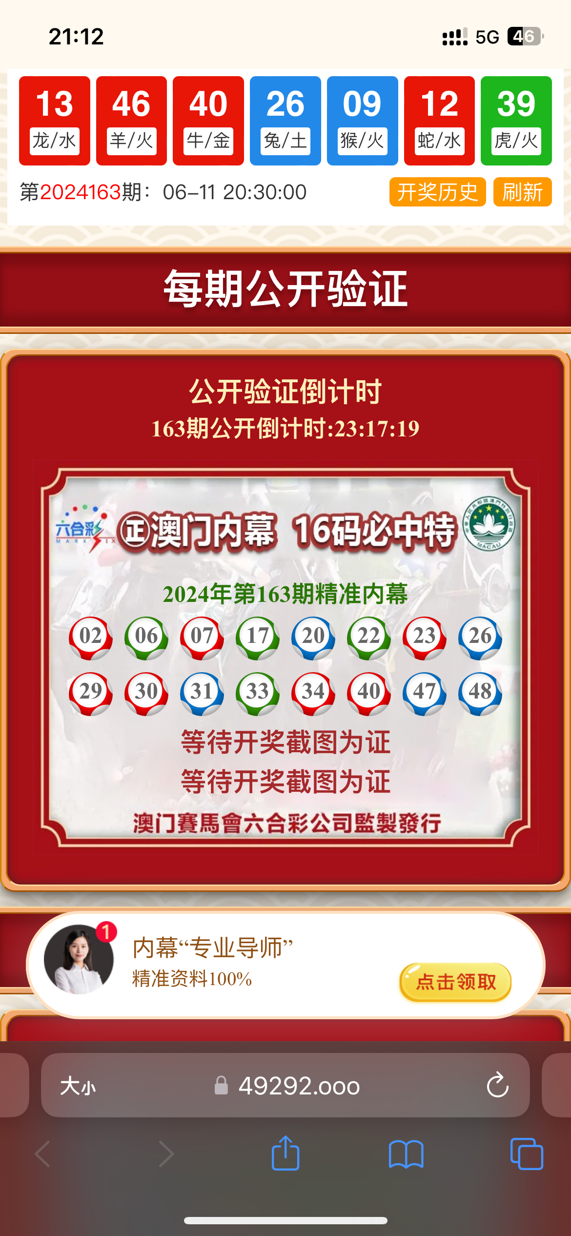 我昨天看了,他一开奖就公开了163期,结果后来在看的时候就更新别的了