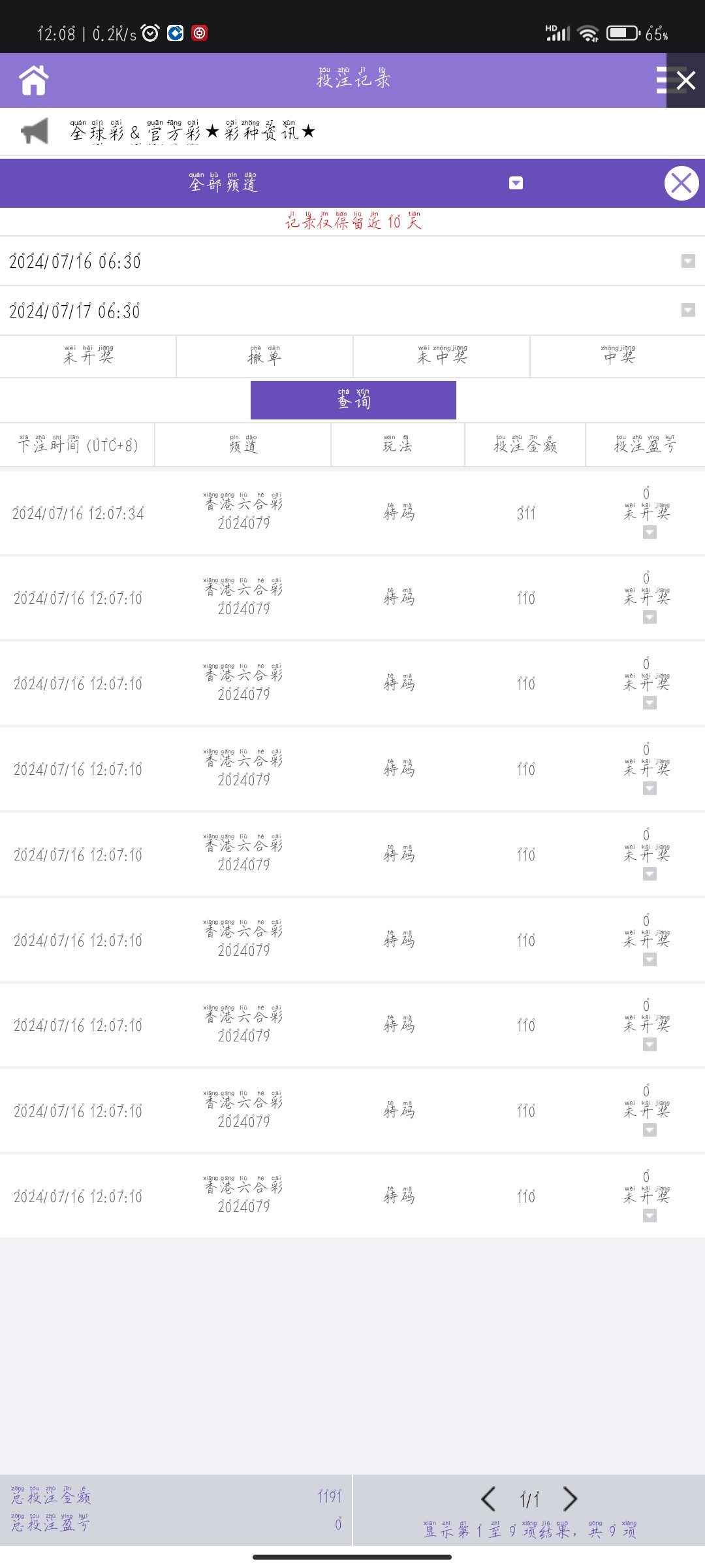 你真是我的哥 一注下了10快 真中了