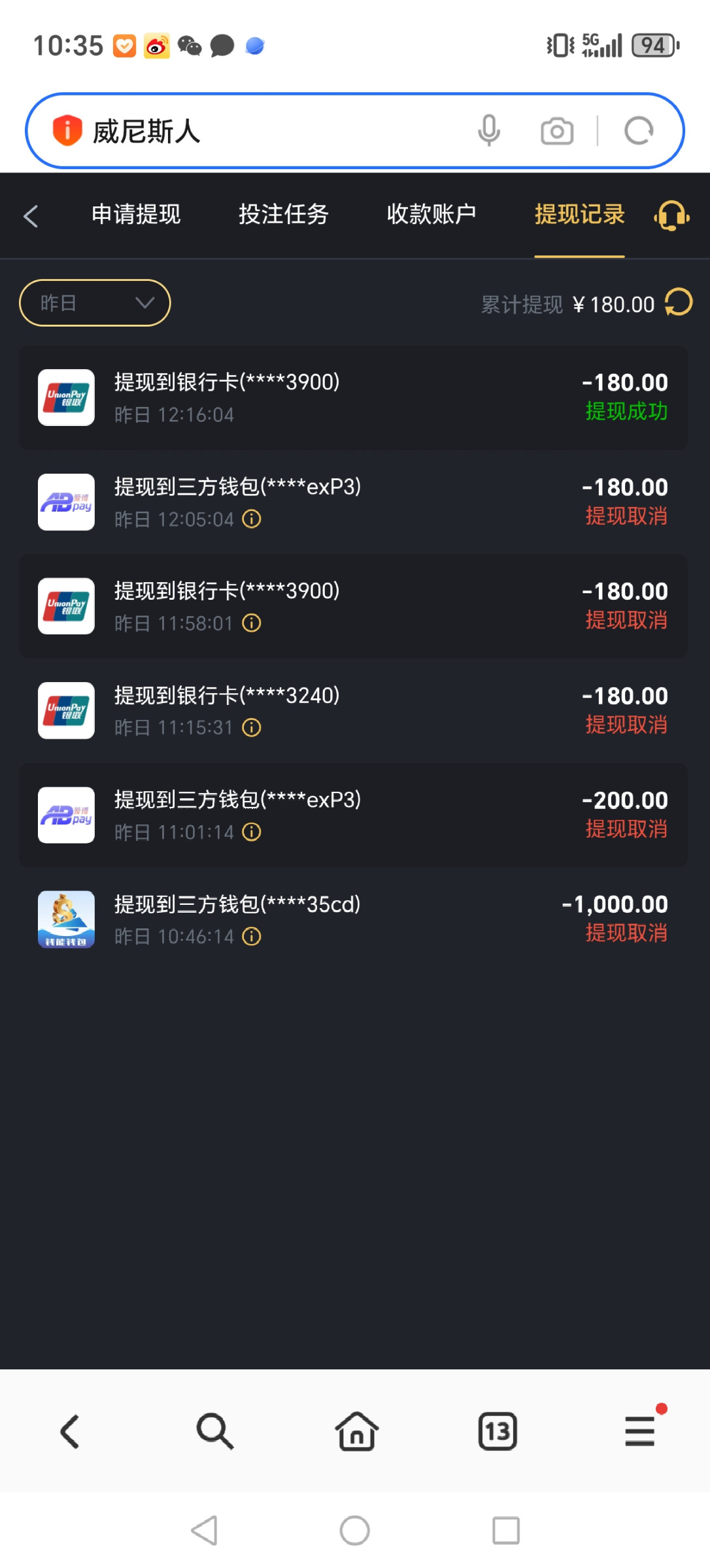 py1110111 先买了个500的免费藏了分,然后提了180,又冲了20,总共白嫖815,我是收到短信去的