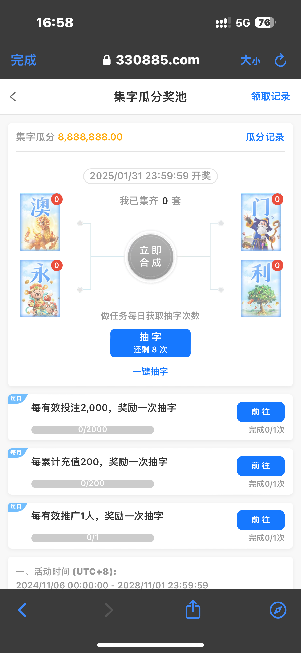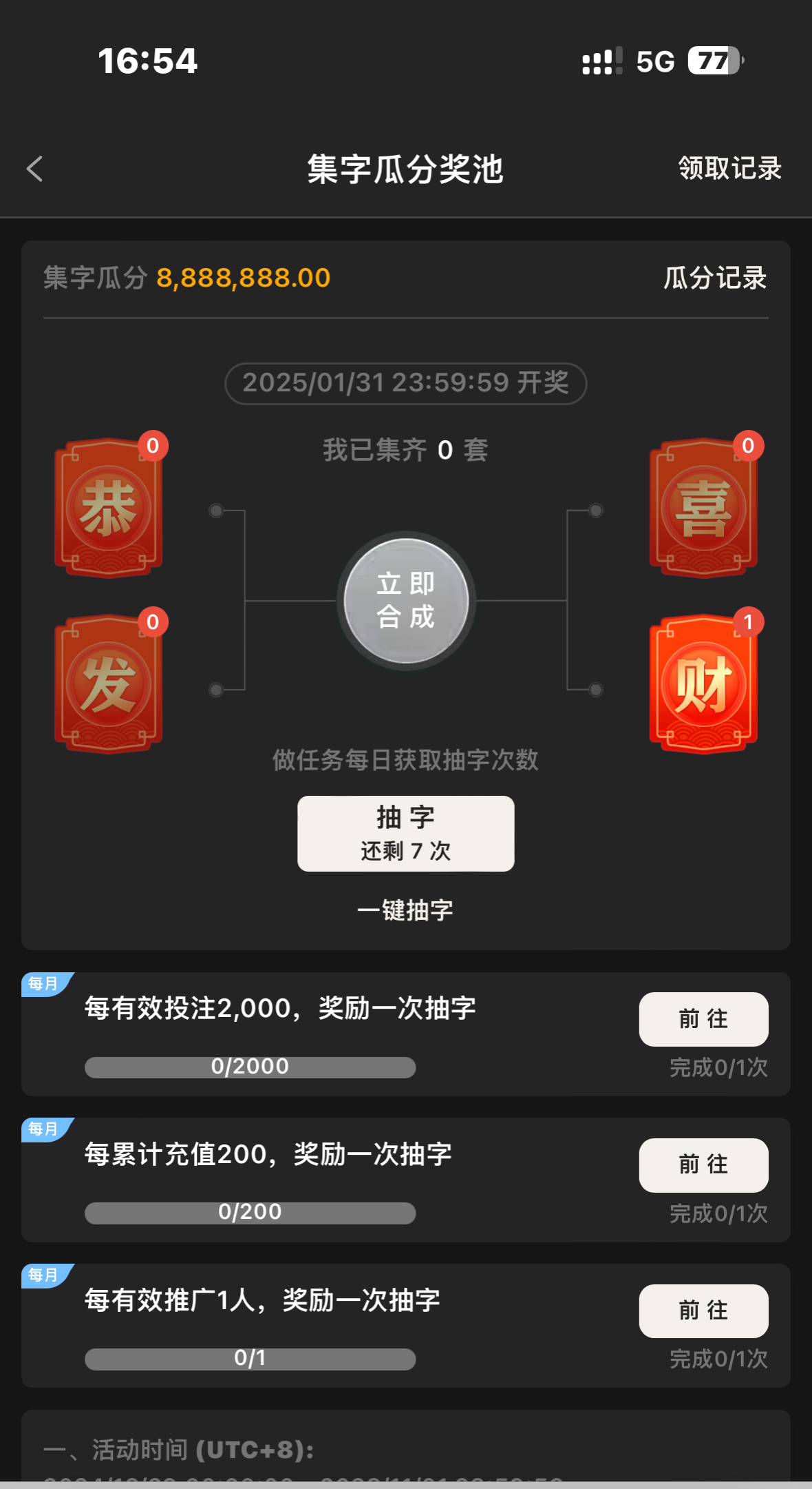 送了8次集字瓜分奖池