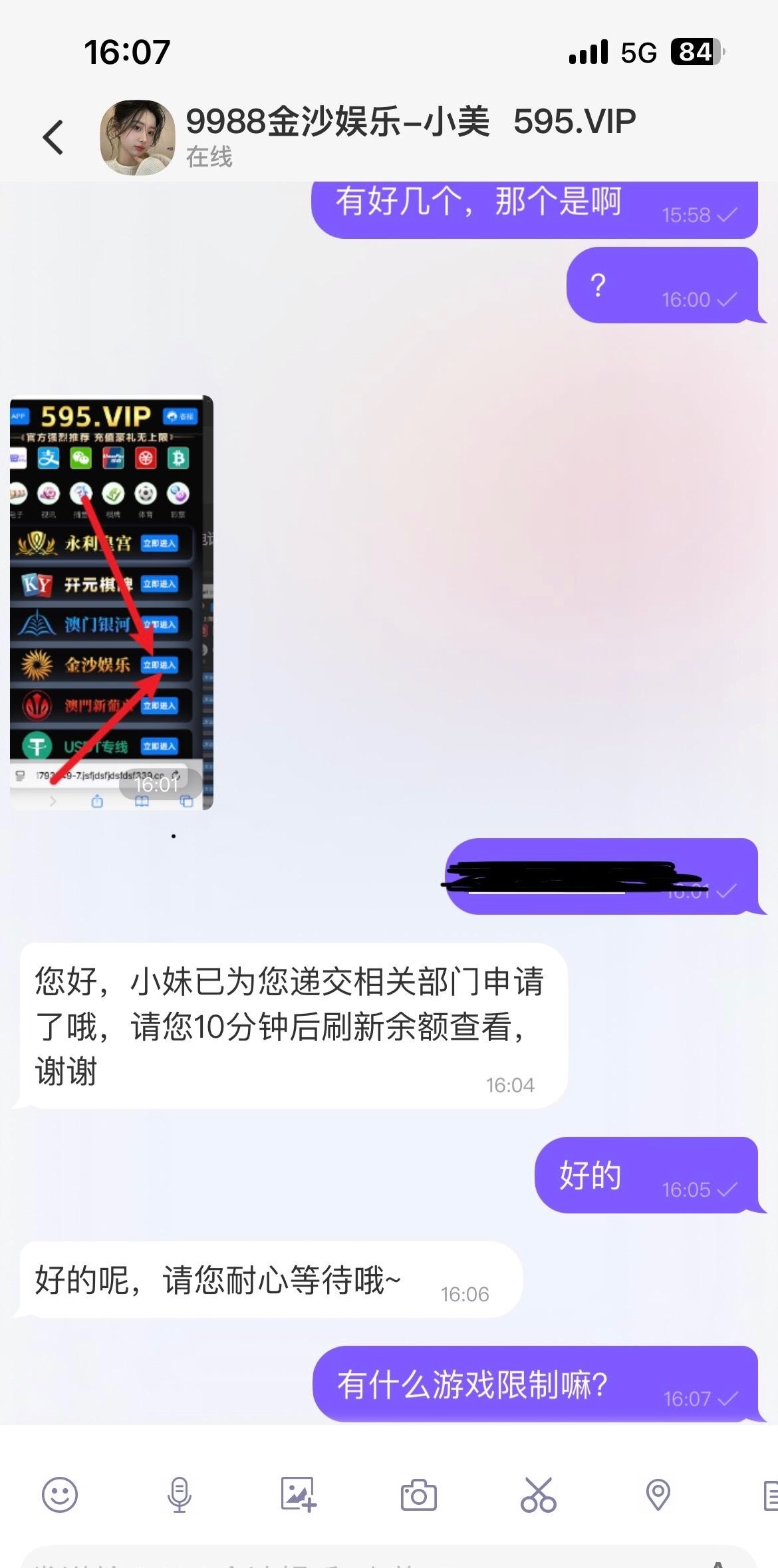 链接595.vip 我上午注册了金沙娱乐,其它都没注册然后刚刚就来电话让下载线聊加客服领彩金,不知道是不是注册其它的也行。线聊333aaa.cc,专员9988cc,没注册过的老哥可以先注册一个等电话。