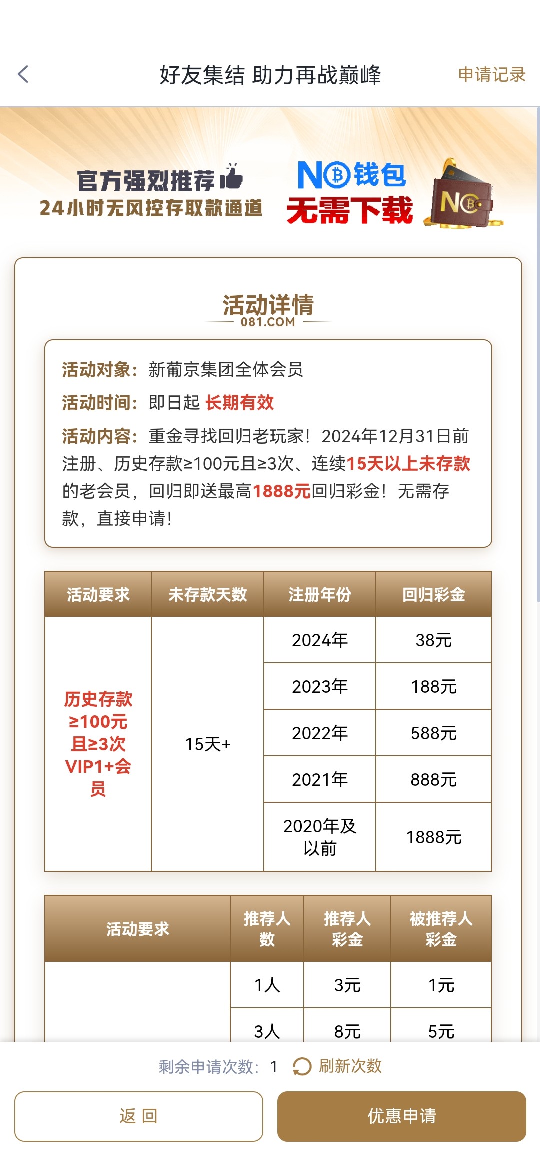 去年注册的可以上号申请看看已经得吃150