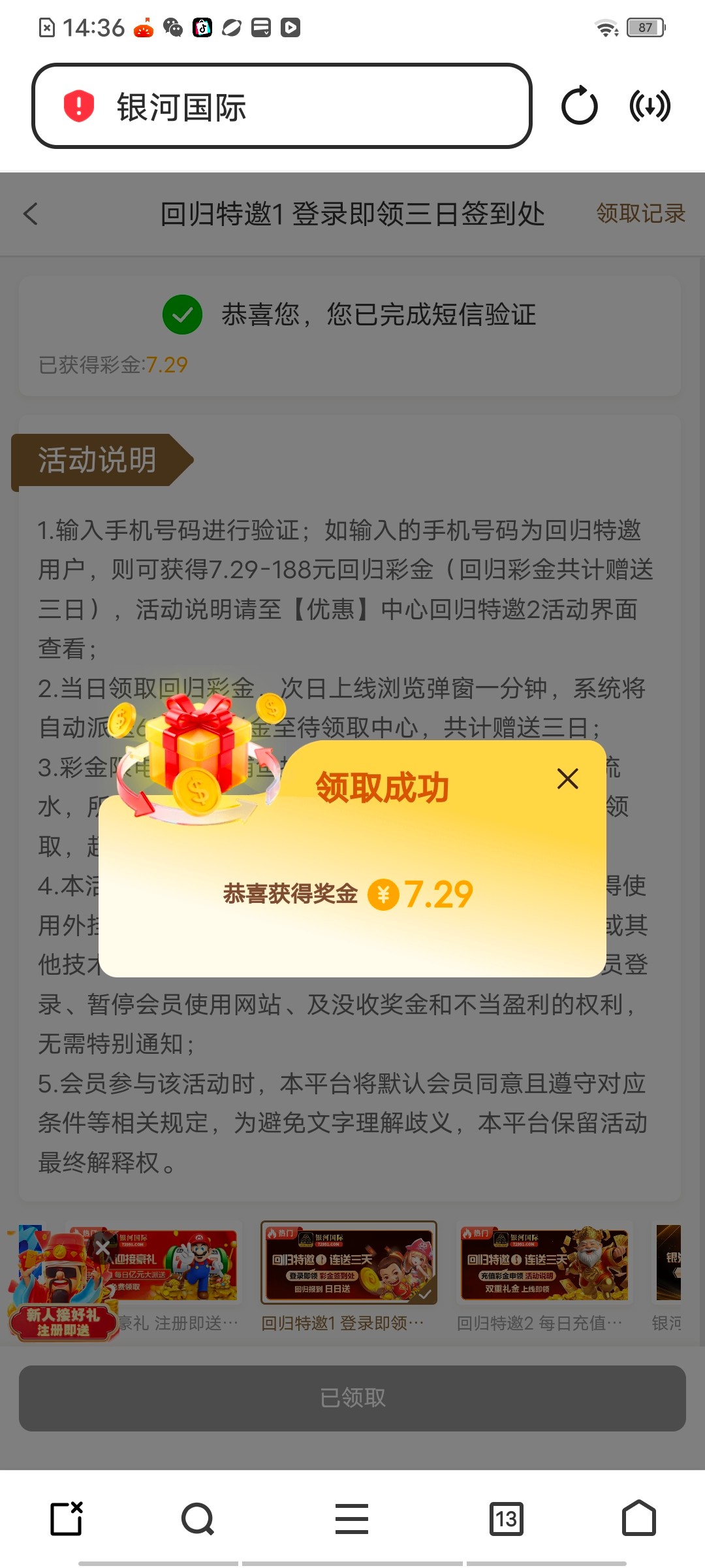银河国际特邀回归连送三天彩金