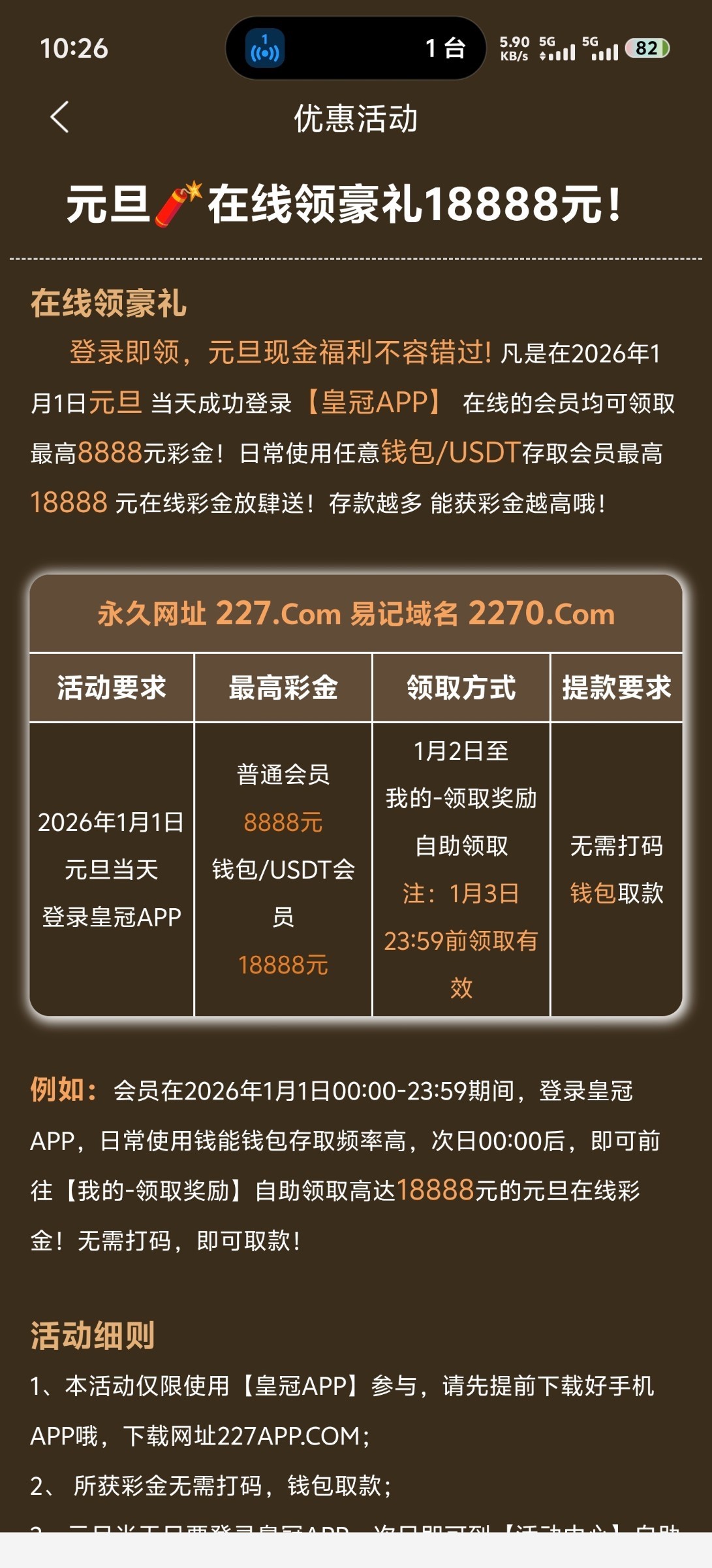 【227皇冠】元旦彩金