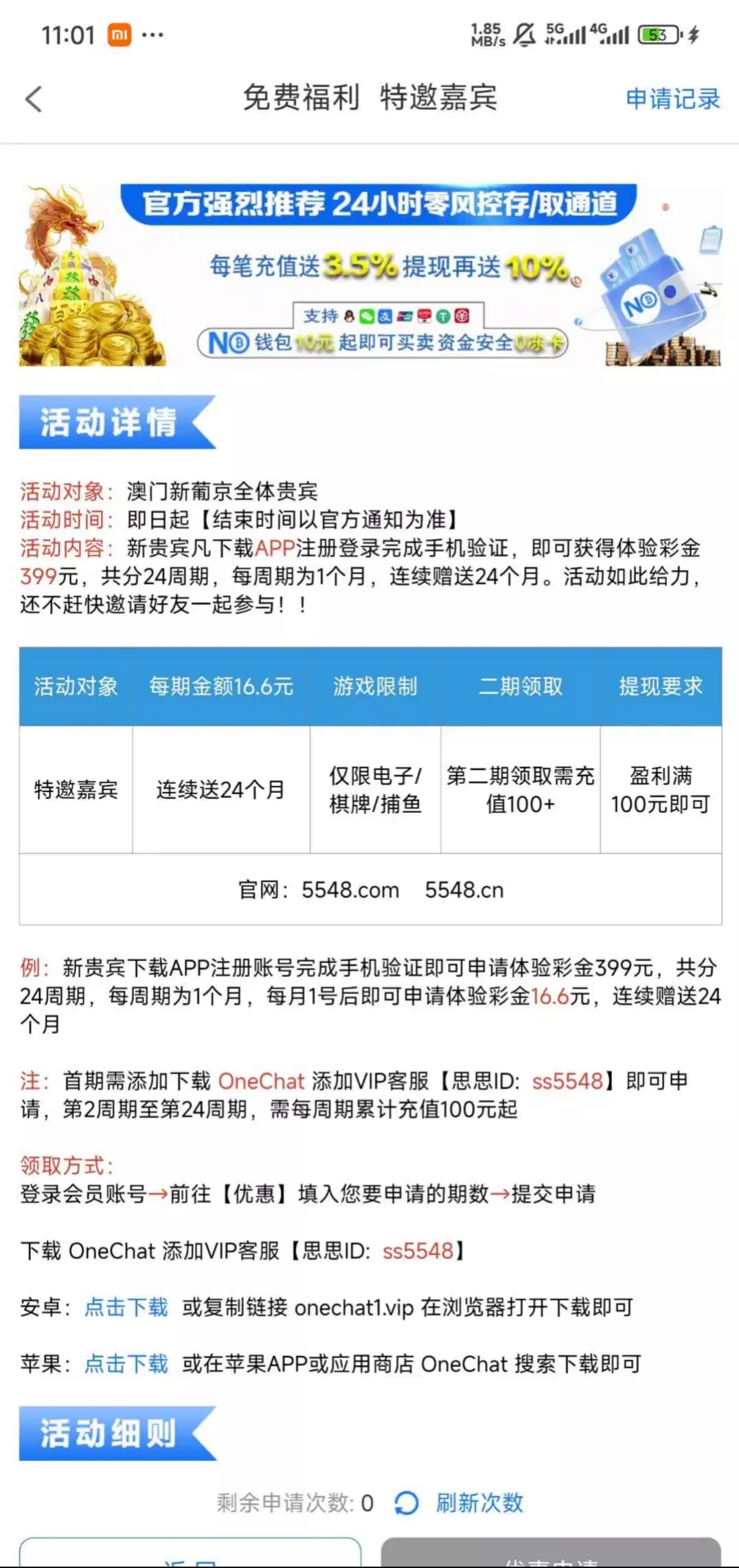注册送16.6直接申请也行 我就是直接申请的 有的老哥去看看网址5548.com 图片上也有 没打出来
