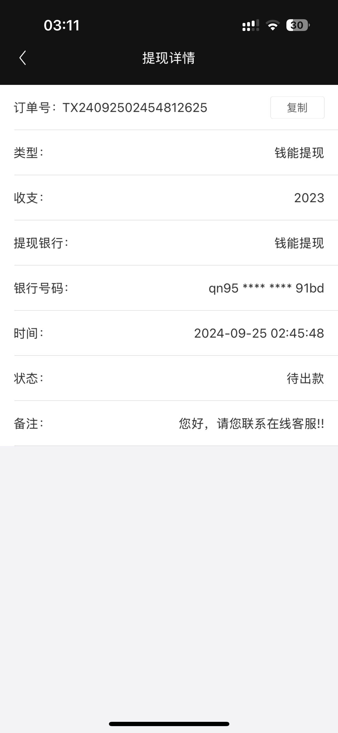 兄弟们注意了,现在骗子真的是出其不意攻其不备的,在你卖币的时候,他会进行抢单然后支付0.1给你,完事就取消订单,冒充钱能客服找到你,老骗取你的资料来盗号,最后被我发现恼羞成怒