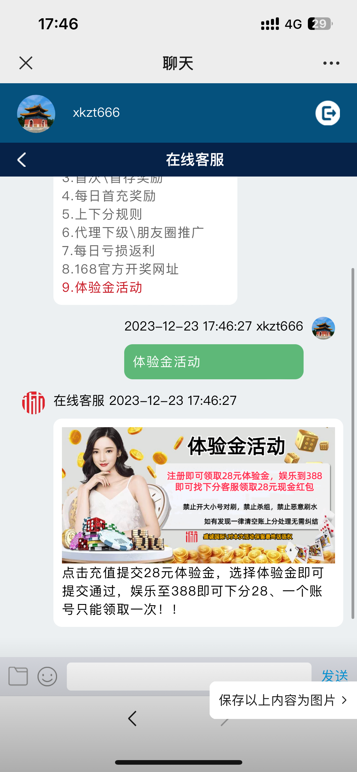 送28打到388下分28 跟以前有人发的帖子不是同一个数据 这个是他们今天出的新台子 两个台子的体验金都可以领(微信扫码)