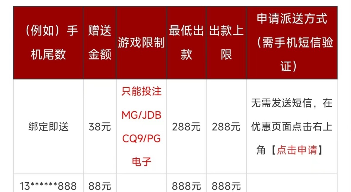 活动详情:下载app 找到活动优惠申请 38彩金 禁止充值 另外app有红包抢